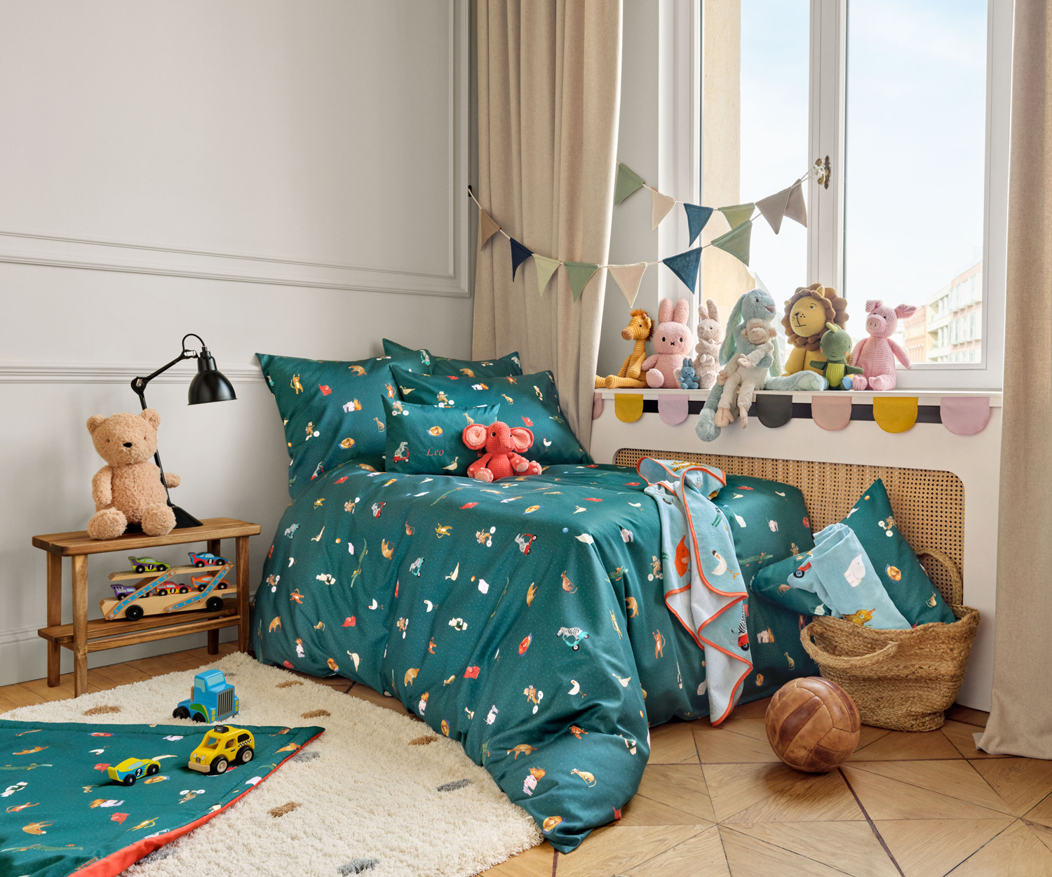Die wunderschön gezeichneten Tierfiguren teilen das Kinderzimmer gerne...