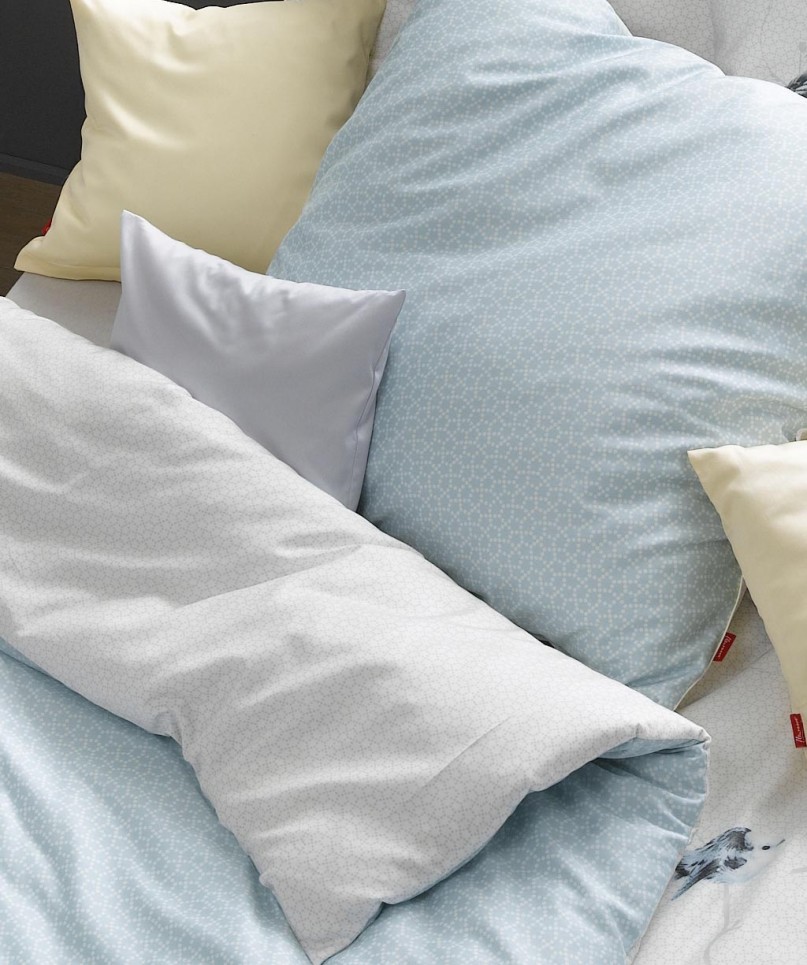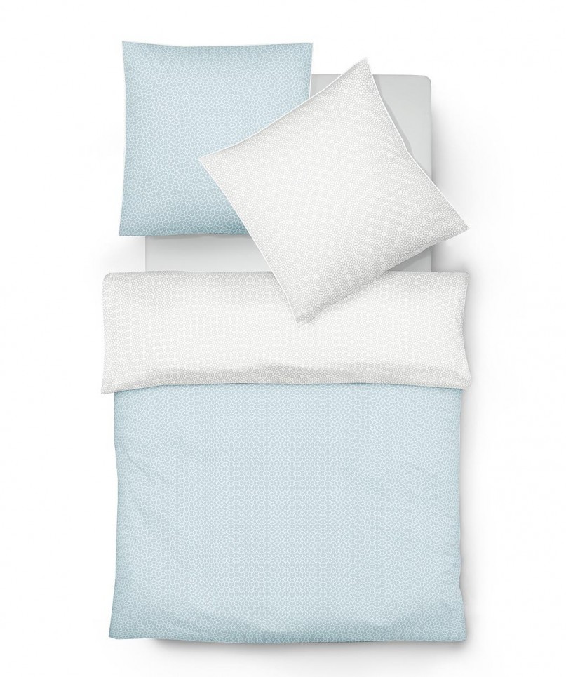 Scandi, der beliebte Wohntrend mit eleganter, softer Farbgebung und reduzierter Formensprache lässt grüßen. Das kleine Grafikmuster bringt nicht nur nordischen Style, sondern als Wendebettwäsche auch noch Abwechslung mit. Die Farbe des Frühlingshimmels SKY - ein zartes Blaugrau - hebt die Leichtigkeit des sommerlichen Designs hervor. Hochwertiges Detail ist das paspelierte Wendekissen